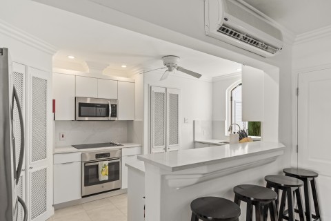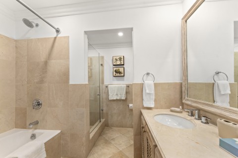 Laid out on one easy level, this apartment is located on the ground floor. Beyond the tropical elegance of the living room a wide terrace provides and out door sitting and dinning area over looking the crystalline water. The apartment comes with a spacious fully equipped kitchen and laundry room. Two guest bedrooms each with en-suite marble bathrooms provide commodious retreats. The sumptuously large master bedroom commands a panoramic vista.The spacious marble master bathroom is designed for privacy and indulgence and accommodates a double vanity and separate bath and shower facility. The relaxed luxury of Port St. Charles is evident in this residence where water front Caribbean living can be experienced in comfort.